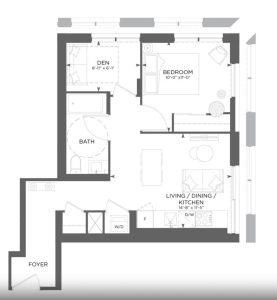 | 房源描述 | 在多伦多市中心享受奢华与便利的生活,这座现代化高层住宅提供优质的专属建筑设施、豪华宽敞的套房。该户型方正实用,大玻璃使得客厅与卧室都有很好的采光。位于31-40层以上,可以欣赏令人惊叹的市中心天际线景观。书房带有窗户,可以做第二间卧室。 | ||